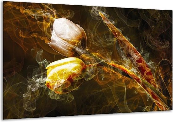bol.com | Glas schilderij Tulpen, Bloemen | Bruin, Goud, Geel | 120x70cm 1Luik | Foto print op...